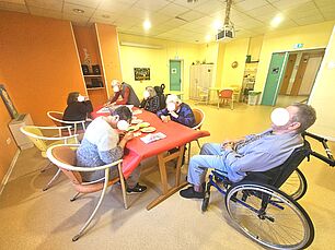 Une fois par mois, une dizaine de résidents sont invités à l’espace détente du bâtiment Brunel.