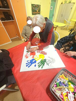 Le 29 janvier 2026, 15 résidents ont eu la joie de partager un moment privilégié avec 15 enfants du Centre de loisirs de Lunel lors d’une activité ludique et créative. Ensemble, ils se sont retrouvés autour d’ateliers de peinture et de coloriage, favorisant la créativité et la collaboration. Cette rencontre a été l’occasion de vivre un véritable moment de convivialité, marqué par le partage, les échanges et la richesse du lien intergénérationnel. Résidents et enfants ont pris beaucoup de plaisir à participer à cette activité. Nous adressons un grand merci au Centre de loisirs de Lunel ainsi qu'aux animateurs pour leur présence et leur implication, qui ont contribué à faire de ce moment un bel instant de rencontre et de partage.